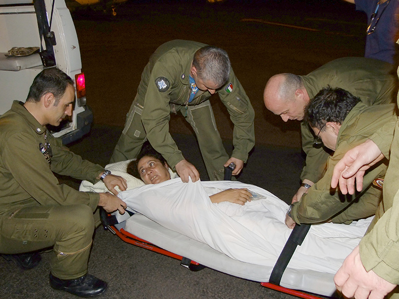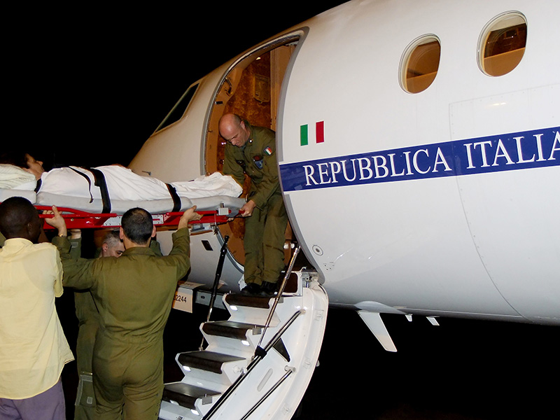 Ricoverata d’urgenza presso l’ospedale di Bergamo il 28 febbraio 2010. Angela stava malissimo, aveva già chiesto al capo dei frati carmelitani l’estrema unzione. Poi all’improvviso la visita del nunzio apostolico (cattolico) all’ospedale di Bangui, l’intervento di Maurizio Sarlo sulla Farnesina e sul Governo di Silvio Berlusconi. Seguì l’immediato trasferimento nel nostro Paese attraverso mezzi aerei militari e sanitari dell’esercito italiano, Infermieri e Medici che l’hanno stabilizzato in loco e poi condotta in sicurezza verso il nosocomio bergamasco. Qui è stata ricoverata in UTIC e sottoposta a dissoluzione coronarica mediante l’impianto in emergenza di due stent.